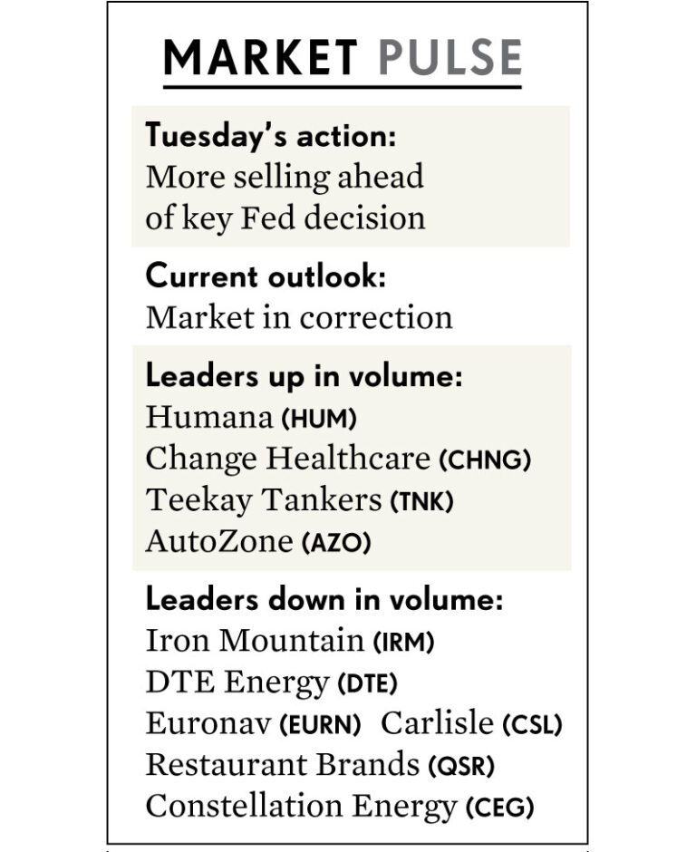 Vào đầu ngày thứ ba, các thị trường chứng khoán cảm thấy bình tĩnh hơn trước cơn bão khi các chỉ số chứng khoán giao dịch trong một biên độ hẹp với các mức giảm nhỏ. Nhưng chẳng mất quá nhiều thời gian để bên bán tiếp tục nhảy vào kiểm soát thị trường, trước khi có bài phát biểu quan trọng của chủ tịch FED vào thứ tư, lúc 2.p.m.ET.