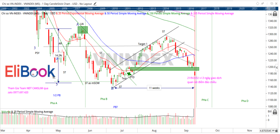 Chưa kể việc sửa lại Nghị Định 153 bằng Nghị Định 65 đang làm thu hẹp cả đối tượng phát hành trái phiếu doanh nghiệp lẫn người tham gia. Các quy định trở nên chặt chẽ hơn như nâng mệnh giá trái phiếu lên bội số 100 triệu đồng, tối thiểu là mệnh giá 100 triệu đồng, trước đây mệnh giá là 100,000 đồng; hay nâng cao tiêu chí của nhà đầu tư trái phiếu chuyên nghiệp cá nhân phải ít nhất 2 tỷ đồng; cũng như các quy định giám sát chặt chẽ hơn; các tiêu chí tài chính của nhà phát hành trái phiếu cũng khắt khe hơn. Sự siết chặt của chính sách tiền tệ đang làm tổn thương các dòng tiền lớn. Khả năng chính các chủ doanh nghiệp hay các lái lớn cũng buộc phải bán cổ phiếu trước áp lực dòng tiền. Vì thế, bất kể định giá của TTCK Việt Nam đang rẻ, hay dưới giá trị thực, trông thật hấp dẫn đối với các nhà đầu tư giá trị thì rủi ro giảm giả của thị trường chứng vẫn còn trong tương lai gần. Team NĐT CANSLIM đã hạ triển vọng thị trường xuống đèn đỏ vào ngày thứ 5 tuần trước, tức yêu cầu nhà đầu tư tăng cường thực hiện việc phòng thủ như cắt lỗ, chốt lãi non nhằm tăng vị thế tiền mặt, bảo vệ vốn trước áp lực bán tháo của thị trường chung. Sự sợ hãi của nhà đầu tư đang lên đến mức cao trào và đó là nguyên nhân khiến thị trường còn áp lực giảm điểm trong tương lai gần. Chỉ số VN-Index chỉ còn cao hơn khoảng 20 điểm so với đáy tháng 7 và khả năng kiểm tra lại, thậm chí phá đáy này là rất cao. Việc đỉnh tháng 8 thấp hơn đỉnh tháng 6 khiến khả năng phá đáy là rất cao vì thất bại trong việc làm gãy xu hướng giảm.