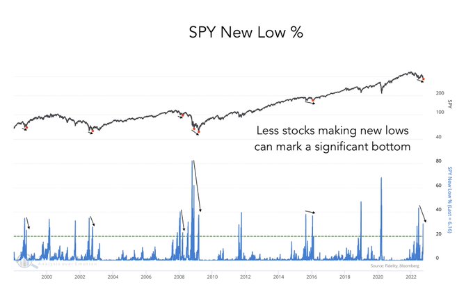 Mặc dù SP500 tạo đáy mới nhưng có ít cổ phiếu hơn tạo đáy mới là dấu hiệu tạo đáy