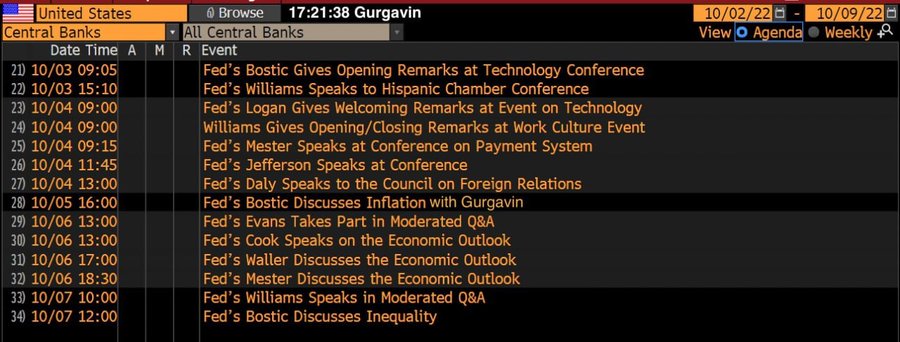 Hiện FED đang có cuộc họp vào ngày 3 tháng 10. Trong tuần này có đến 13 bài phát biểu của các vị chủ tịch FED.