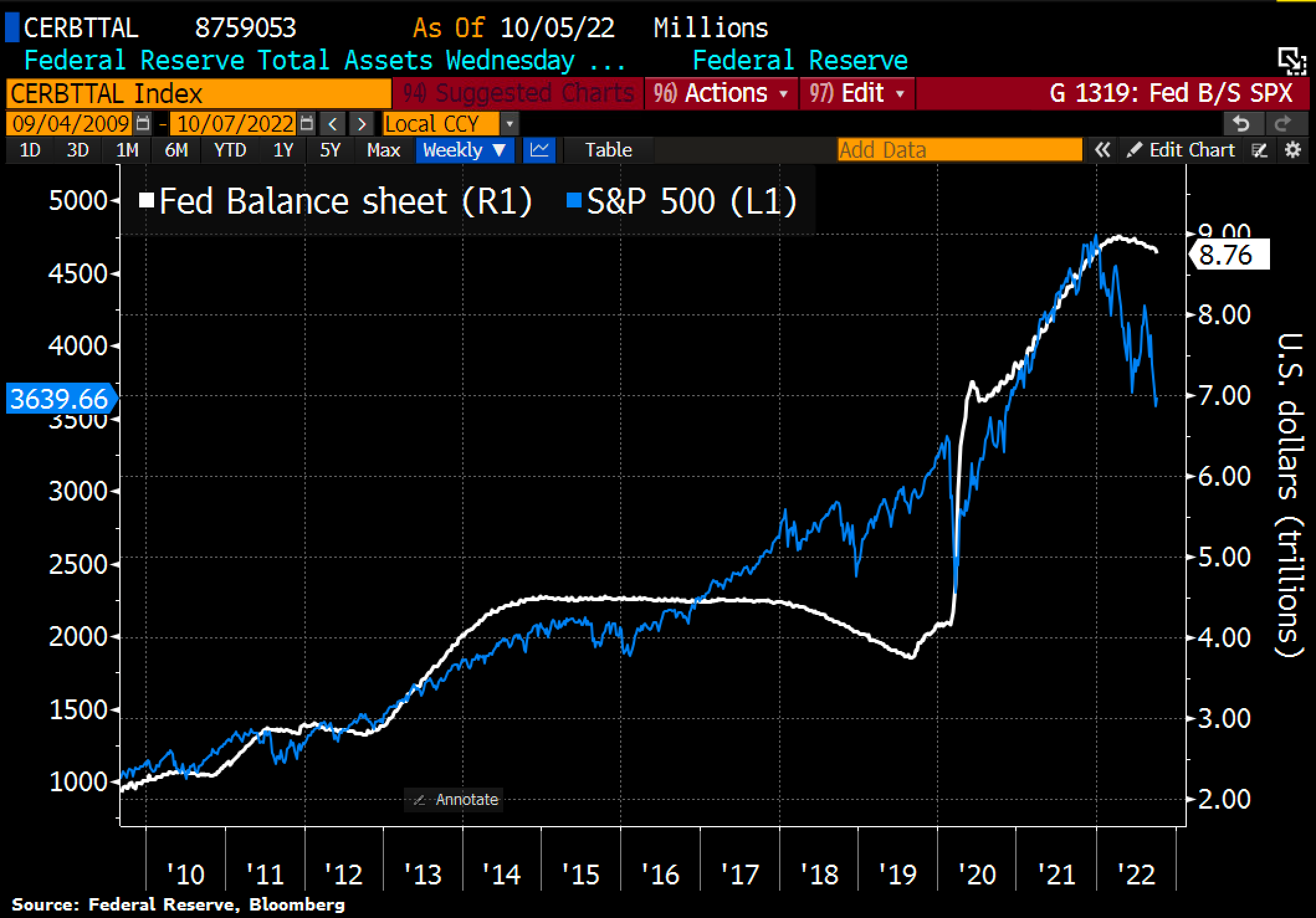 FED đang gặp phải cái bẫy lớn từ thanh khoản của thị trường trái phiếu chính phủ Mỹ khi việc hạ bảng cân đối tài sản đang làm cho thanh khoản thị trường sụt giảm mạnh. Điều đó khiến thị trường kỳ vọng FED sẽ buộc phải quay lại với QE giống như BOJ và BOE vừa làm.