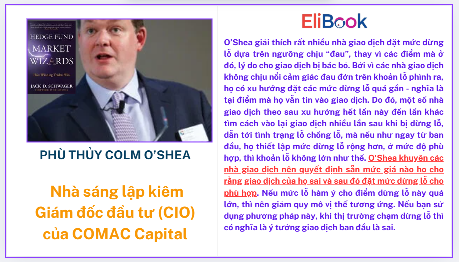 Colm O’Shea, nhà sáng lập kiêm Giám đốc đầu tư (CIO) của COMAC Capital, trụ sở tại London, từng được phỏng vấn trong cuốn sách “Hedge Fund Market Wizards” (Những phù thủy quỹ phòng hộ) của Jack Schwager. Đây là một cuốn sách tuyệt vời và đồ sộ dành cho những độc giả quan tâm đến việc tìm hiểu tư duy của các nhà quản lý quỹ phòng hộ khác nhau và cách họ tiếp cận thị trường tài chính.