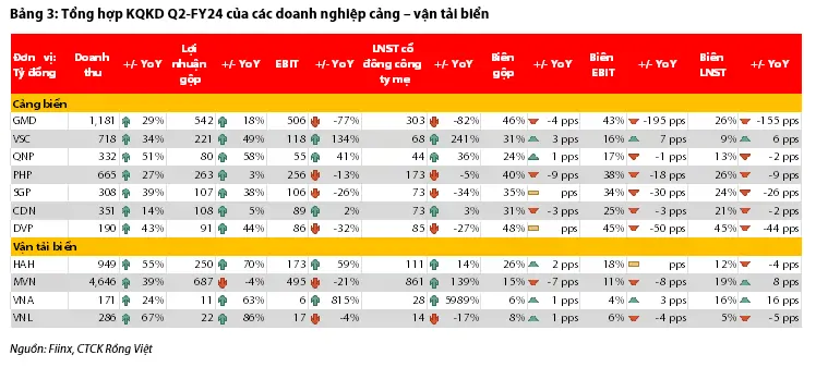Các doanh nghiệp cảng – vận tải biển đều cho thấy bức tranh tài chính tươi sáng trong Q2-FY24