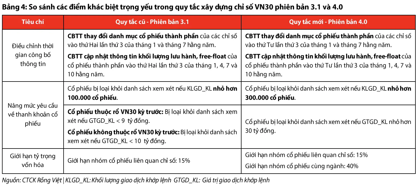 Quy tắc xây dựng và quản lý Bộ chỉ số HOSE-Index, phiên bản 4.0, được ban hành ngày 30/12/2024 và dự kiến hiệu lực sau 60 ngày, có nhiều cải tiến về yêu cầu thanh khoản và chất lượng cổ phiếu thành phần. Kỳ xem xét cơ cấu danh mục tháng 1/2025 vẫn áp dụng bộ quy tắc của phiên bản 3.1.