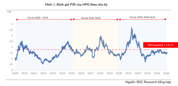 BSC cho rằng, định giá của HPG đang ở đáy chu kỳ: P/B FWD 2025 = 1.3x, FWD 2026 = 1.1x
