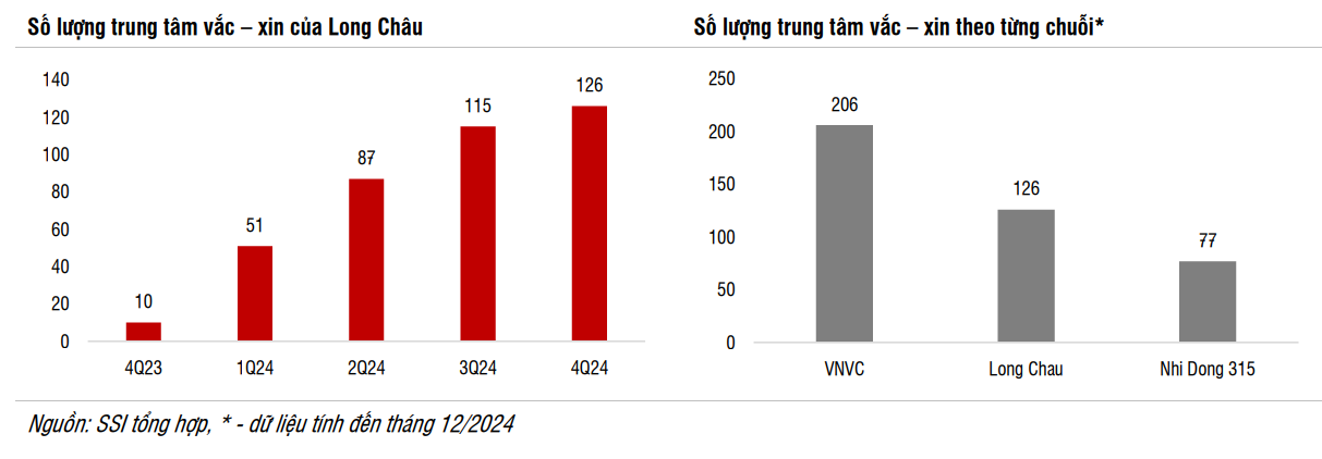 Kết thúc năm 2024, Long Châu có 126 trung tâm tiêm chủng với tỷ lệ 15 hiệu thuốc/ trung tâm tiêm chủng và thời gian hòa vốn cho những cửa hàng mới này là dưới một năm.