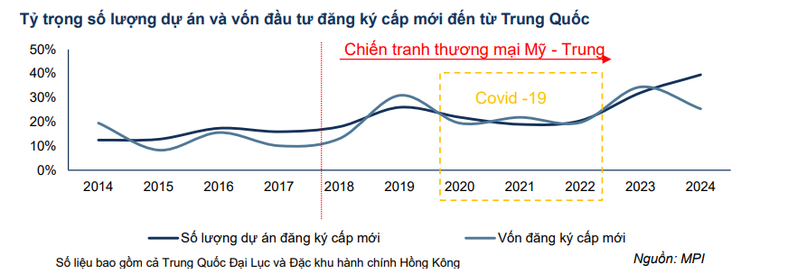 Kể từ khi chiến tranh thương mại Mỹ – Trung (năm 2018), tỷ trọng FDI từ Trung Quốc vào Việt Nam đã có sự gia tăng đáng kể.