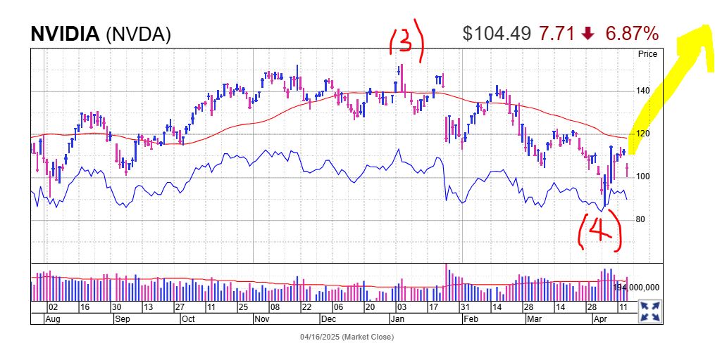Dưới góc nhìn sóng Elliott, Elibook Team cho rằng Nvidia chỉ đã kết thúc sóng (4) giảm giá và đang trên đường tăng giá theo sóng (5)