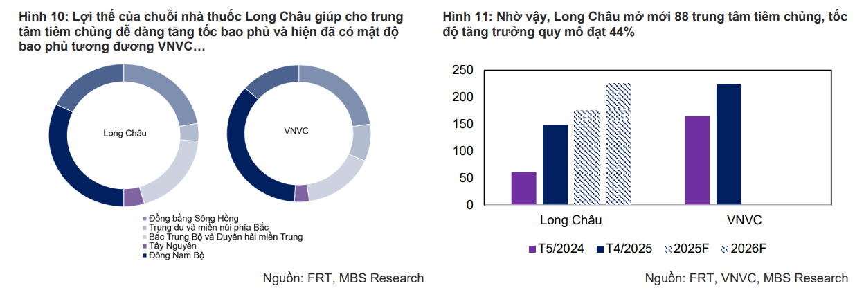 Về chuỗi tiêm chủng, MBS giả định mở mới 50/50 trung tâm tiêm chủng vào năm 2025-26, doanh thu thực tiêm trung bình đạt 1.3 tỷ đồng/tháng – tương đương doanh thu năm 2024.
