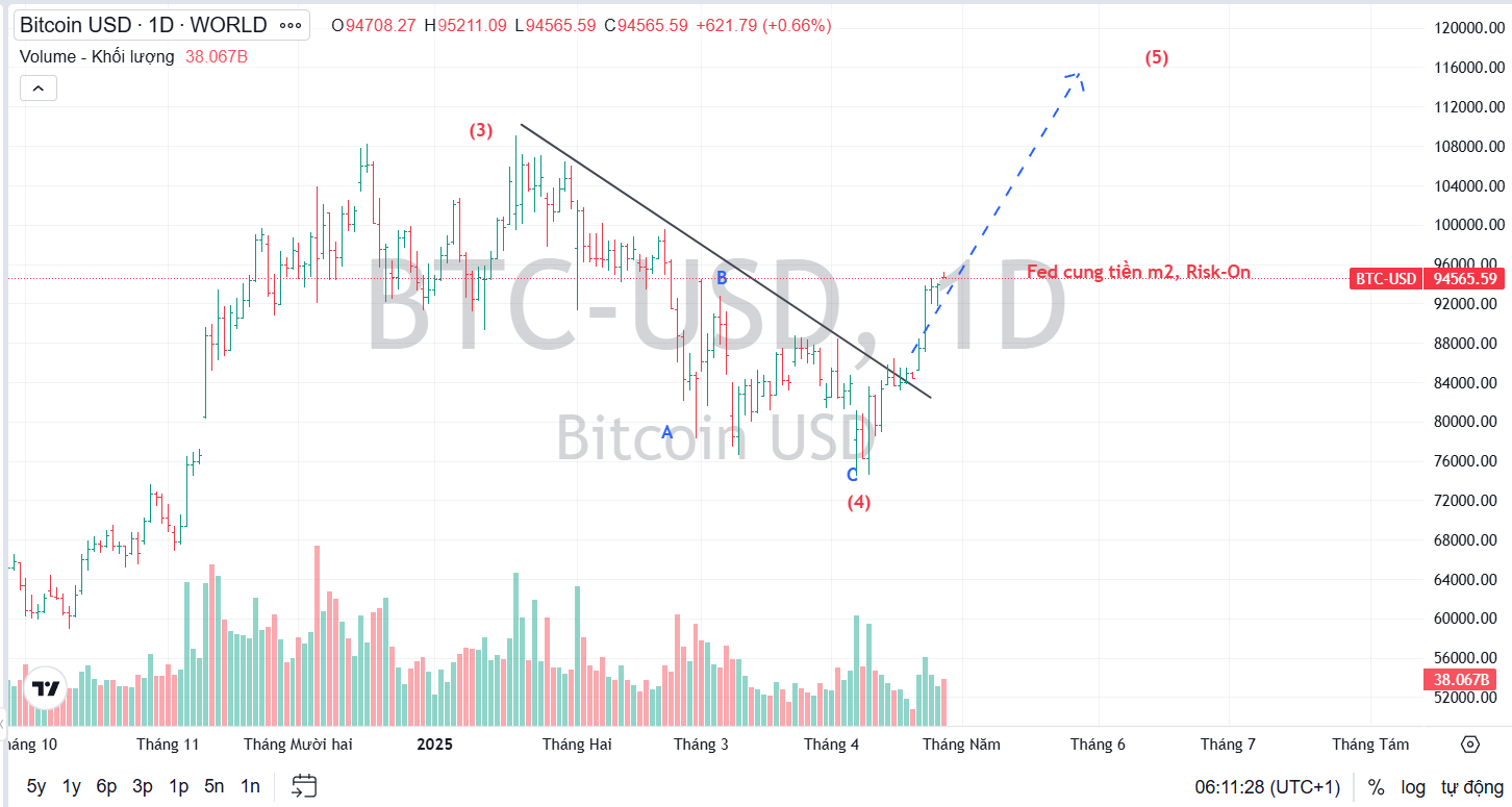 Bình luận của admin: Dựa trên mô hình sóng Elliott, admin kỳ vọng Bitcoin sẽ có xu hướng tăng theo sóng (5).