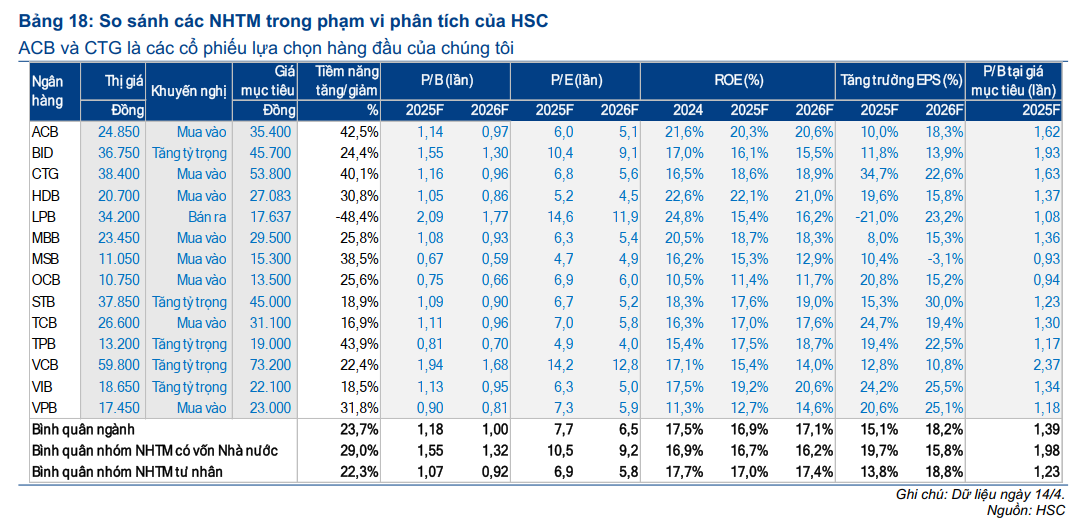 • Những ngân hàng đặt kế hoạch tăng trưởng tín dụng cao hơn đáng kể so với bình quân trong năm 2025 có thể sẽ phải đối mặt với nhiều thách thức hơn để hoàn thành kế hoạch (HDB, MBB, VPB).
