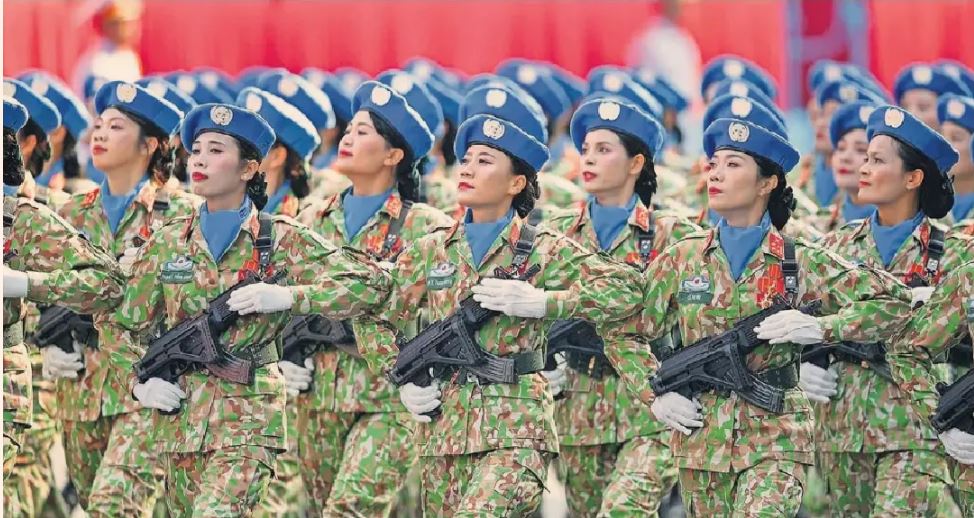 [Hình ảnh: Lực lượng gìn giữ hòa bình nữ của Việt Nam diễu hành trong lễ kỷ niệm 50 năm kết thúc chiến tranh với Mỹ, tại Thành phố Hồ Chí Minh hôm qua.]