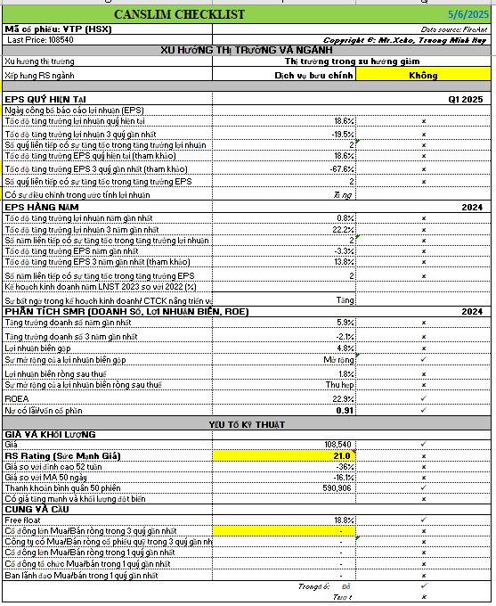 Do đó, mặc dù VTP không đỗ các tiêu chí quan trọng về trong bảng CANSLIM checklist nhưng Elibook Team vẫn đánh giá cao doanh nghiệp này khi nhìn vào mảng kinh doanh cốt lõi (logistic và chuyển phát) chứ không phải kết quả kinh doanh tổng thể.