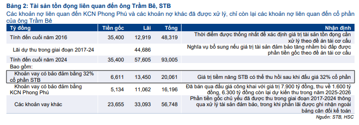 Dựa trên dư nợ bao gồm nợ gốc 6,611 tỷ đồng và lãi dự thu 13,450 tỷ đồng, giá đấu giá cần ở mức khoảng 33,200 đồng/cp để STB thu hồi đầy đủ.