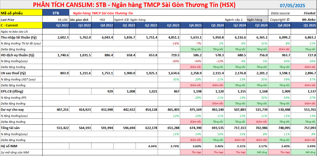 Trong quý 1/2025, tăng trưởng tín dụng của STB đạt 4.6%, cao hơn nhẹ so với mức tăng trưởng chung của toàn hệ thống là 3.9%.