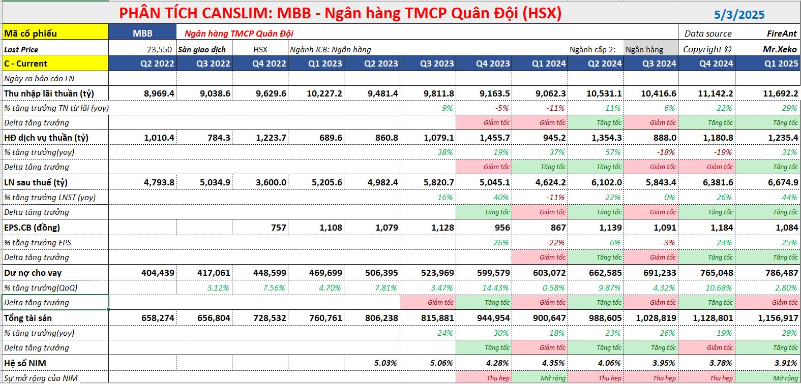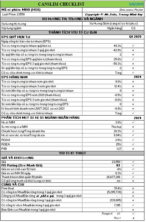 MBB đỗ nhiều tiêu chí quan trọng trong CANSLIM Checklist để trở thành cổ phiếu tăng trưởng.