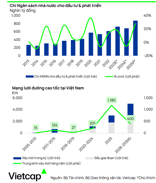 - Đẩy mạnh đầu tư công: Chính phủ đã điều chỉnh kế hoạch đầu tư công năm 2025 lên 875 nghìn tỷ đồng, tăng 37.7% so với ước giải ngân năm 2024. Mục tiêu giải ngân 100% ngân sách đầu tư công trong năm 2025, nhằm đạt mục tiêu tăng trưởng GDP 8%, sẽ tạo ra một “cú hích” lớn cho nhu cầu vật liệu xây dựng, trong đó có ống nhựa. Nhu cầu nhựa xây dựng trong đầu tư công tập trung chủ yếu vào ống nhựa HDPE cấp thoát nước cho các dự án hạ tầng đô thị và bảo vệ cáp điện, viễn thông tại các dự án đường cao tốc. Với kế hoạch hoàn thành 1,188 km đường bộ cao tốc trong năm 2025 (gấp 10 lần năm 2024) và tăng trưởng giá trị xây dựng nước dự kiến đạt CAGR 7.04% (2019-2026), NTP với thế mạnh ở mảng ống nhựa hạ tầng HDPE được kỳ vọng sẽ hưởng lợi lớn từ làn sóng này.
