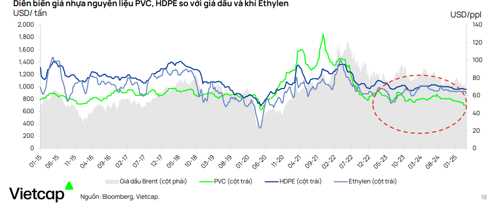 Với chi phí nguyên liệu nhựa chiếm khoảng 70% cơ cấu chi phí sản xuất của NTP, việc giá hạt nhựa neo ở mức thấp sẽ trực tiếp hỗ trợ biên lợi nhuận gộp của công ty trong năm 2025.