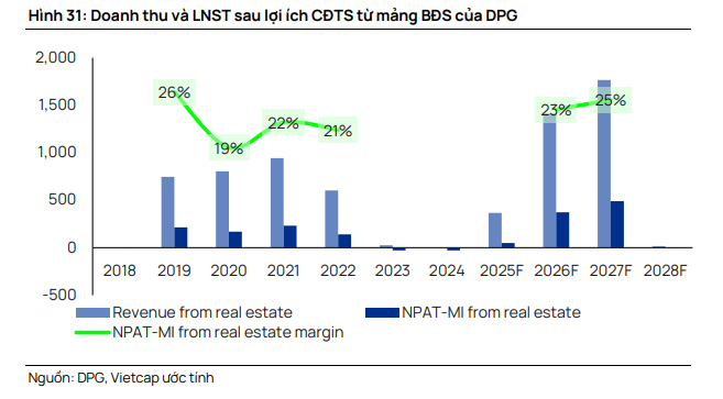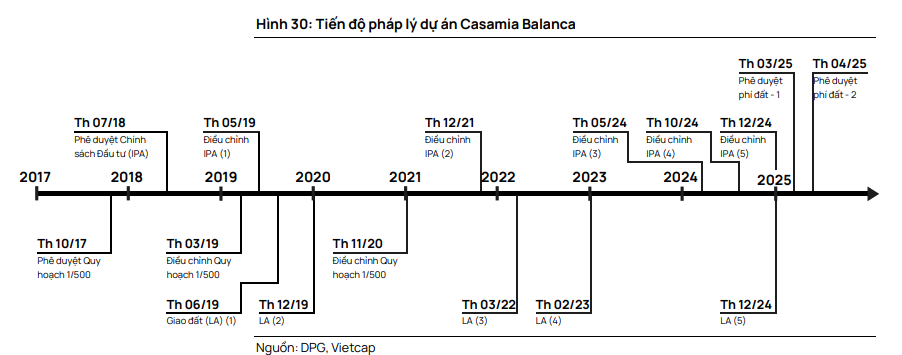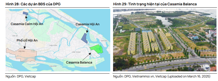 Trong quá khứ, các dự án BĐS của DPG đã đạt mức biên lợi nhuận gộp trung bình 48% và biên LNST sau lợi ích CĐTS trung bình ước tính khoảng 22%. Vietcap dự báo dự án Casamia Balanca sẽ được tái khởi động trong nửa cuối năm 2025, từ đó bước vào giai đoạn mở bán trước ngay sau khi hoàn tất các thủ tục pháp lý.