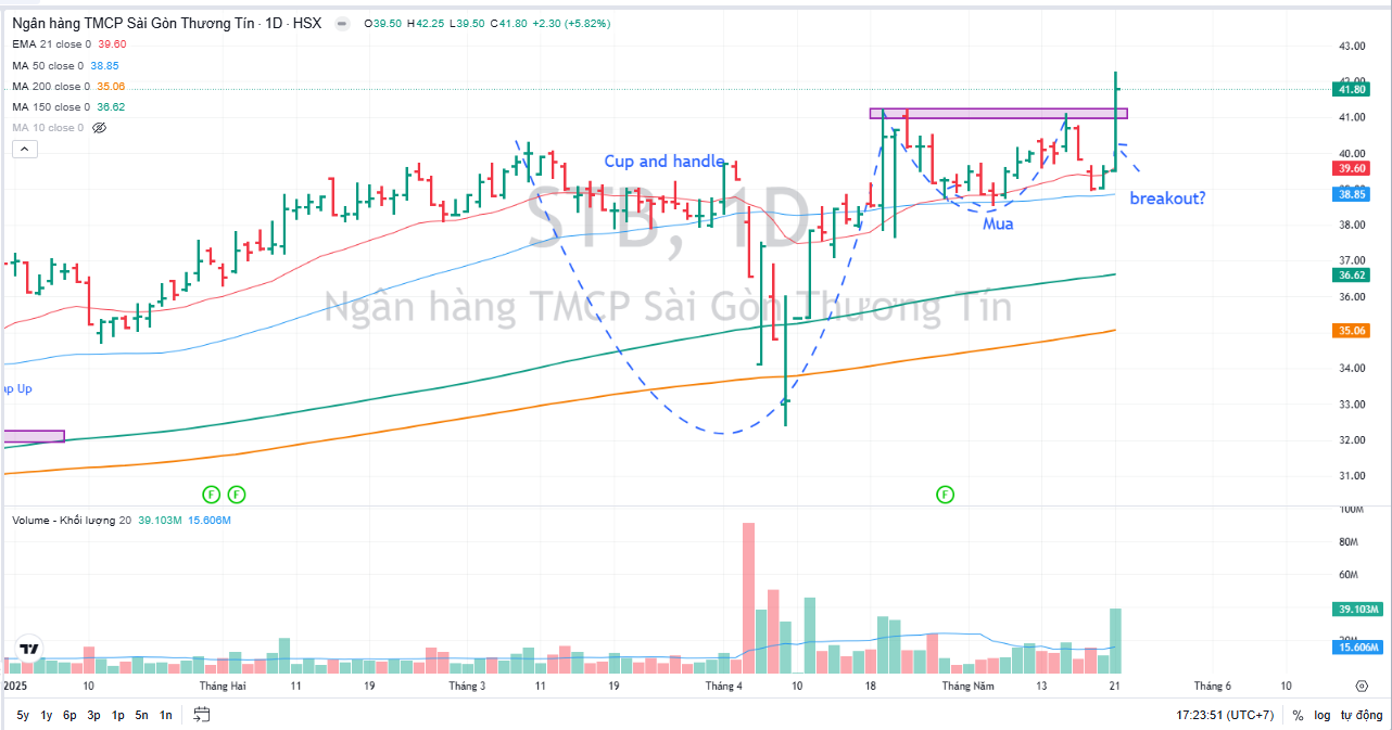 Elibook duy trì khuyến nghị nắm giữ đối với STB sau khi đã khuyến nghị mua hồi tháng 12.2024. Tuy nhiên, ngày 21.5.2025, STB breakout mẫu hình Chiếc Cốc Tay Cầm. Khả năng VN-Index đang bị kháng cự quanh vùng 1300 điểm và các điểm breakout nền giá chưa hoạt động tốt. Do đó, các nhà giao dịch có thể giảm bớt vị thế.