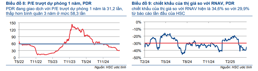 HSC tin rằng PDR vẫn có mức định giá thấp, với nhiều thông tin tiêu cực đã phản ánh vào giá cổ phiếu. Những tiến triển trong kế hoạch phát triển dự án, đặc biệt là việc mở bán thành công dự án Bình Dương Tower, được xem là động lực tăng trưởng chính cho giá cổ phiếu trong thời gian tới.
