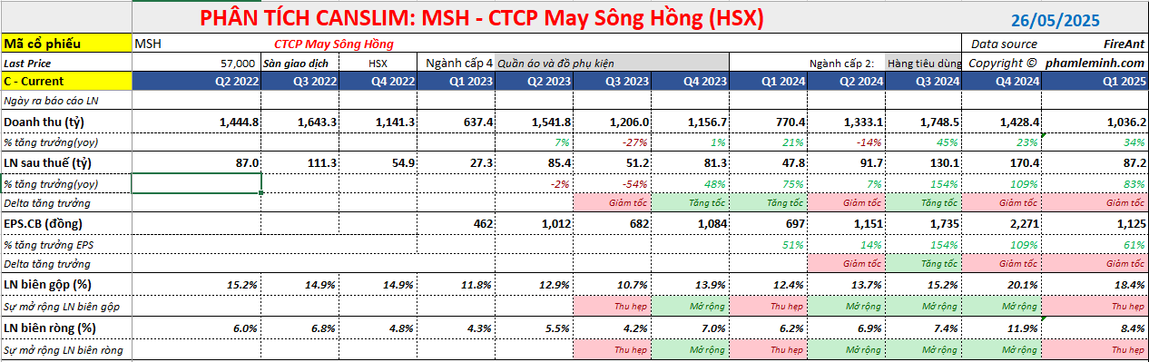 CTCP May Sông Hồng (MSH) đã ghi nhận kết quả kinh doanh Quý 1/2025 khá tích cực với doanh thu và lợi nhuận tăng trưởng đáng kể. Tuy nhiên, bất chấp những tín hiệu lạc quan ban đầu, triển vọng cho các quý cuối năm 2025 và giai đoạn 2025-2027 có thể đối mặt với nhiều thách thức, chủ yếu do tác động của chính sách thuế quan từ Mỹ và tình hình nhu cầu thị trường.