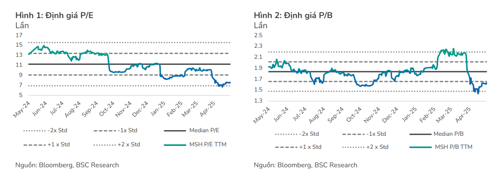 BSC dự báo MSH ghi nhận DTT năm 2025 đạt 5,838 tỷ đồng (+10.5% YoY) và LNST-CĐTS đạt 424 tỷ đồng (+3.3% YoY). Điều này tương đương EPS 2025 là 5,649 VNĐ/CP, với P/E FW 2025 là 8.3 lần.