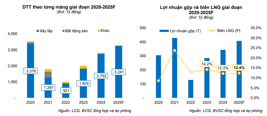 BVSC dự báo tích cực về kết quả kinh doanh của LCG trong năm 2025, với doanh thu thuần đạt 3,294 tỷ đồng (+16.9% YoY) và lợi nhuận sau thuế của cổ đông công ty mẹ (LNST-CĐTS) đạt 149 tỷ đồng (+21.8% YoY).
