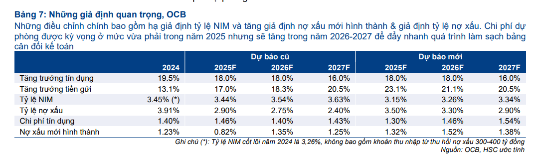 HSC (30.5.2025) đã giảm 6% giá mục tiêu của OCB xuống 12,700 đồng/cổ phiếu. Việc điều chỉnh này do ba yếu tố chính: