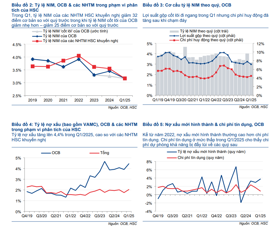 Kết quả kinh doanh Quý 1/2025 của Ngân hàng TMCP Phương Đông (OCB) cho thấy những khó khăn nhất định, đặc biệt là sự sụt giảm lợi nhuận và áp lực gia tăng từ nợ xấu. Điều này khiến HSC phải điều chỉnh giảm dự báo lợi nhuận và hạ khuyến nghị đối với cổ phiếu OCB xuống “Tăng tỷ trọng” (từ “Mua vào”). Tuy nhiên, ở mức định giá hiện tại, OCB vẫn tiềm ẩn sức hấp dẫn nhất định.