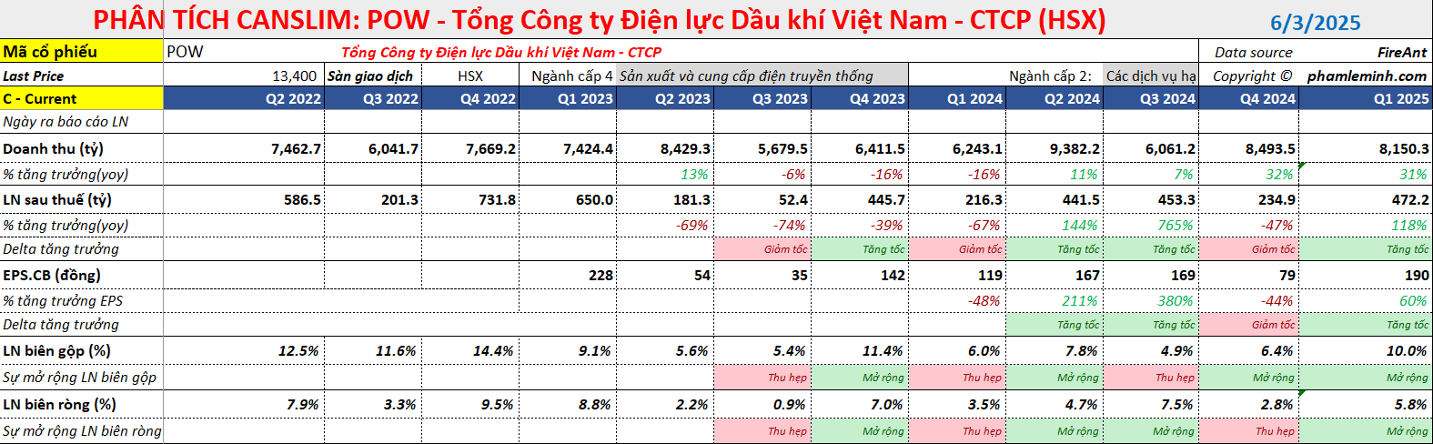 - Vietcap (22.4.2025) hiện có khuyến nghị PHÙ HỢP THỊ TRƯỜNG đối với POW với giá mục tiêu là 12,900 đồng/cổ phiếu.