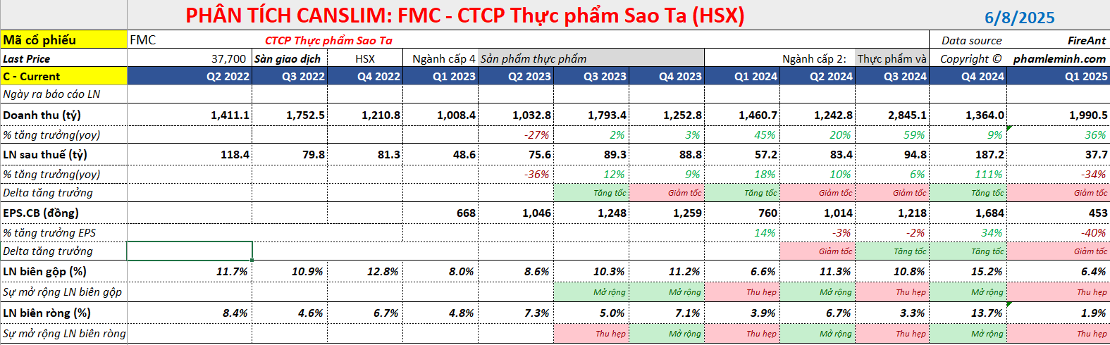 FMC đặt kế hoạch thận trọng cho năm 2025 với doanh thu thuần 6,540 tỷ đồng (-5.4%yoy) và LNTT 420 tỷ đồng (tương đương năm 2024). Tuy nhiên, VDSC (4.6.2025) kỳ vọng LNST Công ty mẹ của FMC sẽ đạt khoảng 308 tỷ đồng (+1%yoy), tương đương giá mục tiêu dài hạn là 48,000 đồng với khuyến nghị MUA.