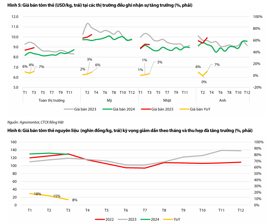 - Giá tôm nguyên liệu: Mặc dù giá tôm thẻ nguyên liệu vẫn ở mức cao so với cùng kỳ, kỳ vọng giá sẽ giảm dần theo tháng và thu hẹp đà tăng trưởng nhờ mùa vụ chính sẽ được thu hoạch trong tháng 6.