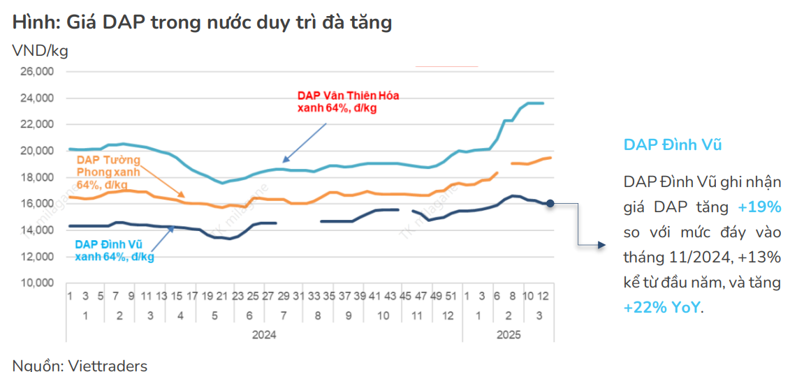 - Trung Quốc đẩy mạnh xuất khẩu DAP: Nếu Trung Quốc tăng tốc và quy mô xuất khẩu DAP nhanh hơn dự kiến, giá DAP quốc tế có thể chịu áp lực điều chỉnh mạnh hơn, ảnh hưởng đến giá bán bình quân của DDV.