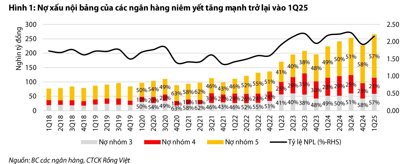 Tình hình nợ xấu ngành ngân hàng trong Quý 1/2025 đang cho thấy những diễn biến phức tạp, đặc biệt là sự gia tăng đáng kể của nợ quá hạn sau một Quý 4/2024 khá tích cực. Dữ liệu từ VDSC chỉ ra rằng nợ nhóm 2 đang có xu hướng tăng trở lại, đồng thời áp lực trích lập dự phòng tiếp tục đè nặng lên các ngân hàng.