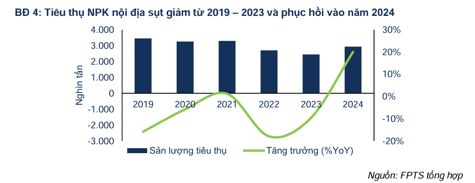 - Giá bán NPK tăng +7.5% YoY: Do chi phí nguyên liệu đầu vào gia tăng.