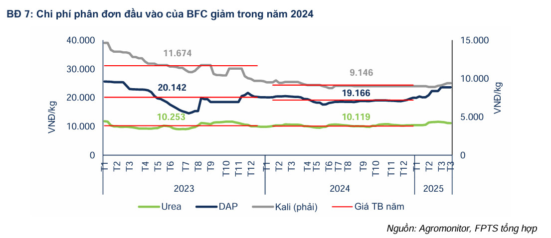 - Biên lợi nhuận gộp cải thiện: Do giá bán NPK giảm nhẹ hơn mức giảm của giá phân đơn đầu vào.