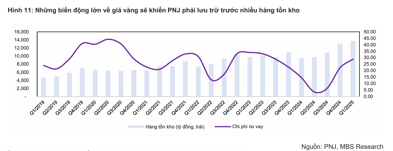 - Khôi phục mảng kinh doanh vàng miếng: Doanh thu vàng miếng của PNJ đã giảm mạnh 66% so với cùng kỳ trong quý 1/2025, khiến tỷ trọng đóng góp vào tổng doanh thu giảm từ 30% xuống 18%. Việc tăng nguồn cung vàng nguyên liệu và vàng miếng sẽ giúp PNJ khôi phục và phát triển lại mảng này.