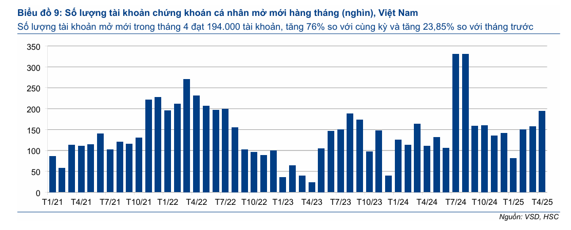 - Ra mắt hệ thống giao dịch KRX: Hệ thống mới được triển khai vào ngày 5/5/2025 đã nâng cao đáng kể công suất giao dịch. HSC kỳ vọng giá trị giao dịch bình quân có thể vượt 30 nghìn tỷ đồng/ngày khi hệ thống vận hành trơn tru, đồng thời tạo điều kiện thuận lợi cho các sản phẩm giao dịch mới.