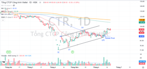 Ngày 11.6.2025, CTR có điểm mua Pocket Pivot và hiện cổ phiếu đang tích luy quanh MA50 ngày. Hiện tại ELibook Team đang ưu tiên nắm giữ VTP và FPT trong ngành công nghệ, trong khi theo dõi CTR và DGC.