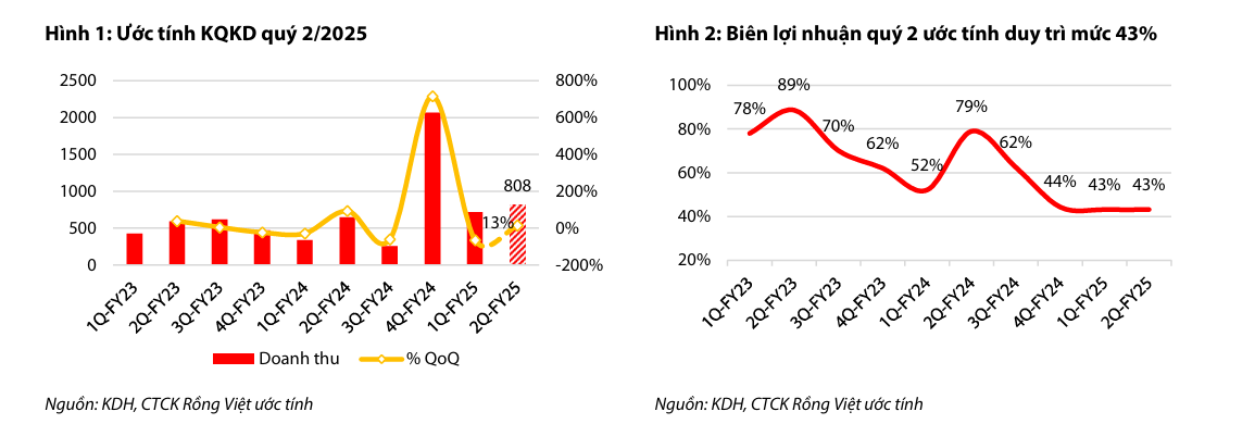 VDSC dự báo Quý 2/2025 của KDH sẽ tiếp tục khởi sắc nhờ bàn giao các sản phẩm còn lại của dự án The Privia. Dự án này dự kiến mang về thêm 808 tỷ đồng doanh thu và 153 tỷ đồng lợi nhuận sau thuế của cổ đông mẹ (LNST-CĐM), với biên lợi nhuận gộp duy trì ổn định quanh mức 43%. Tính đến cuối Q1/2025, The Privia đã bàn giao khoảng 80% tổng sản phẩm, và 20% còn lại (khoảng 200 căn hộ và 20 căn shophouse) sẽ được ghi nhận trong Quý 2.