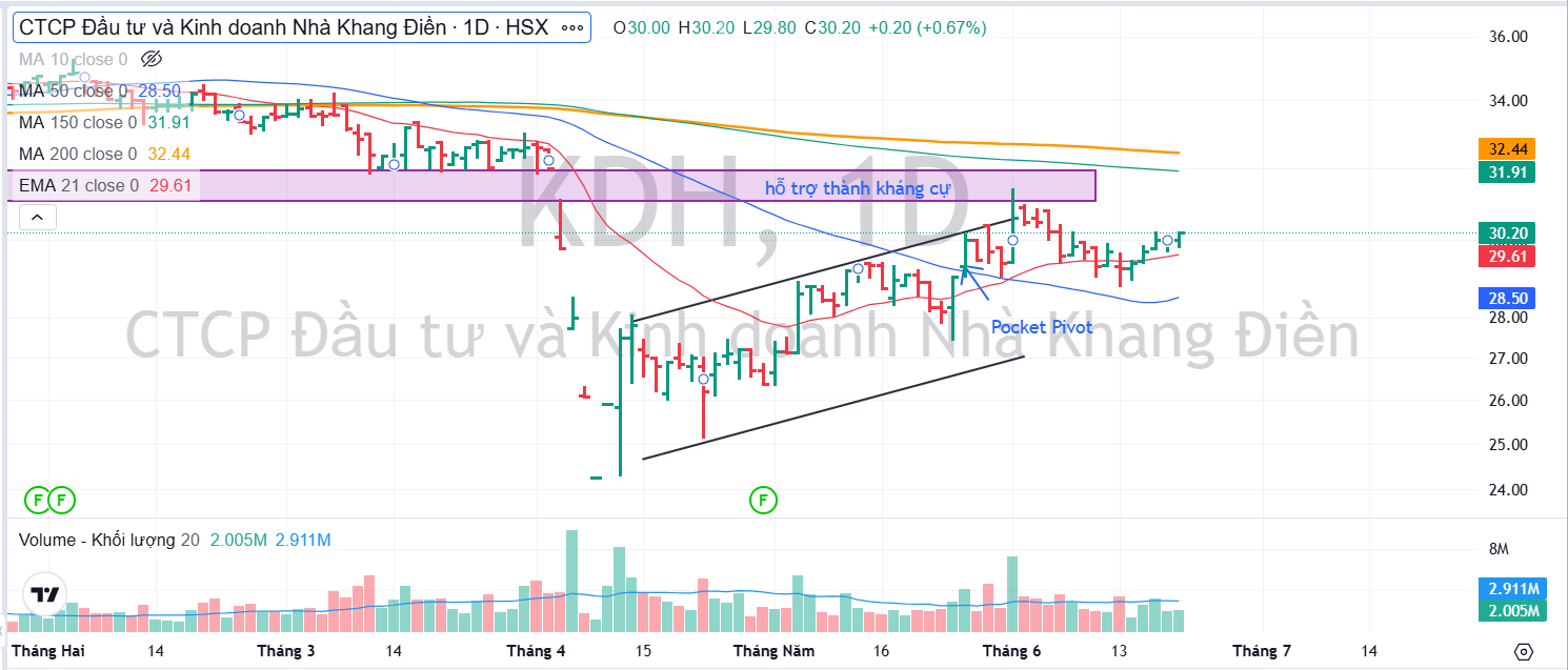 KDH được kỳ vọng tiếp tục xây nền giá tích luỹ quanh MA50 ngày.