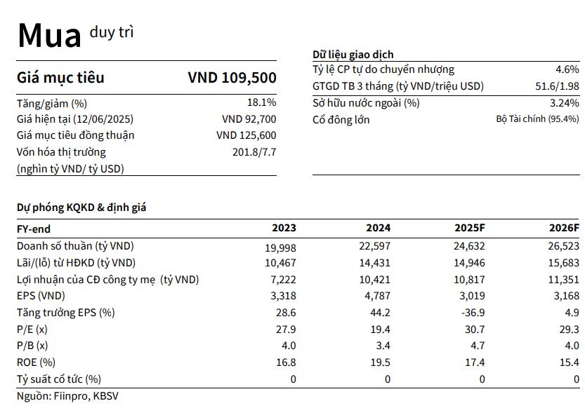 Theo đó, LNST-CĐTS năm 2025 đạt 10,817 tỷ (+4% yoy) và năm 2026 đạt 11,351 tỷ (+5% yoy)