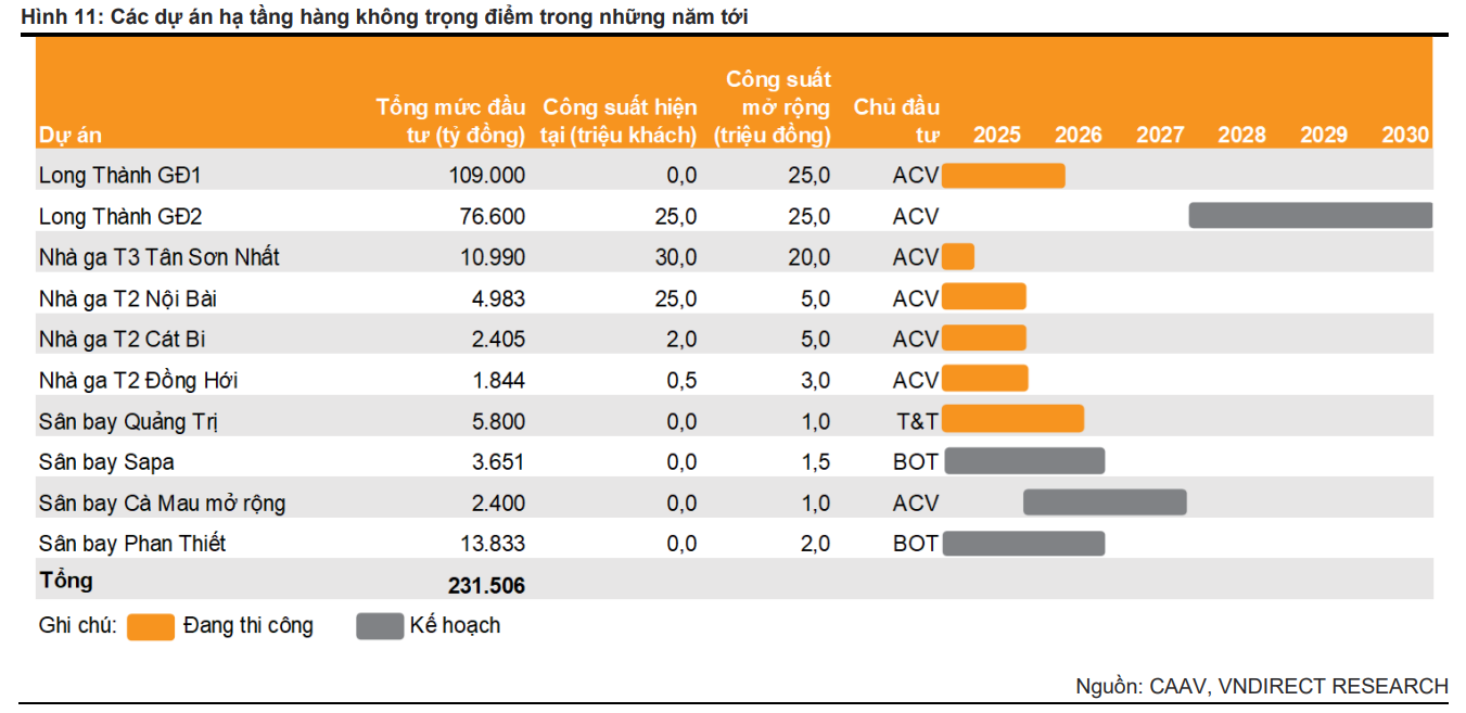 - Tiến độ dự án: Nhà ga T3 Tân Sơn Nhất đã đi vào hoạt động từ tháng 4/2025. Sân bay Long Thành giai đoạn 1 dự kiến hoàn thành vào năm 2026. Các dự án này sẽ tăng tổng công suất và hỗ trợ tăng trưởng dài hạn.