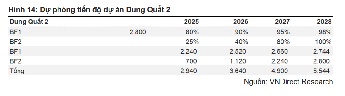 - Dung Quất 2 là động lực tăng trưởng chính: VNDirect kỳ vọng sản lượng tiêu thụ HPG tăng 35% trong năm 2025, với sản lượng HRC bán ròng tăng 147% lên khoảng 4.4 triệu tấn. Lò cao số 1 của Dung Quất 2 đã vận hành từ tháng 3, và lò cao số 2 dự kiến đi vào hoạt động trong Q4/2025.