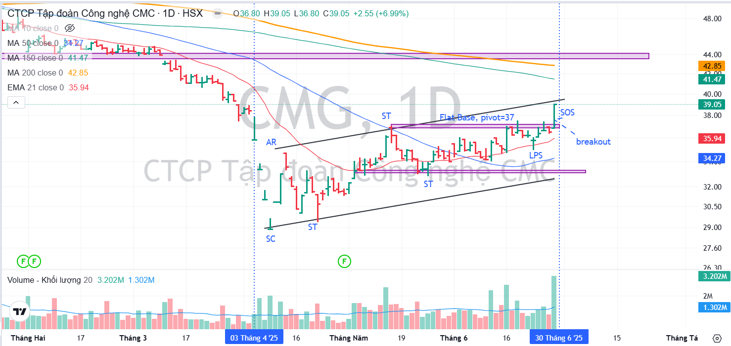 Ngày 27.6.2025, CMG breakout Nền Giá Phẳng, vượt qua điểm mua 37,000