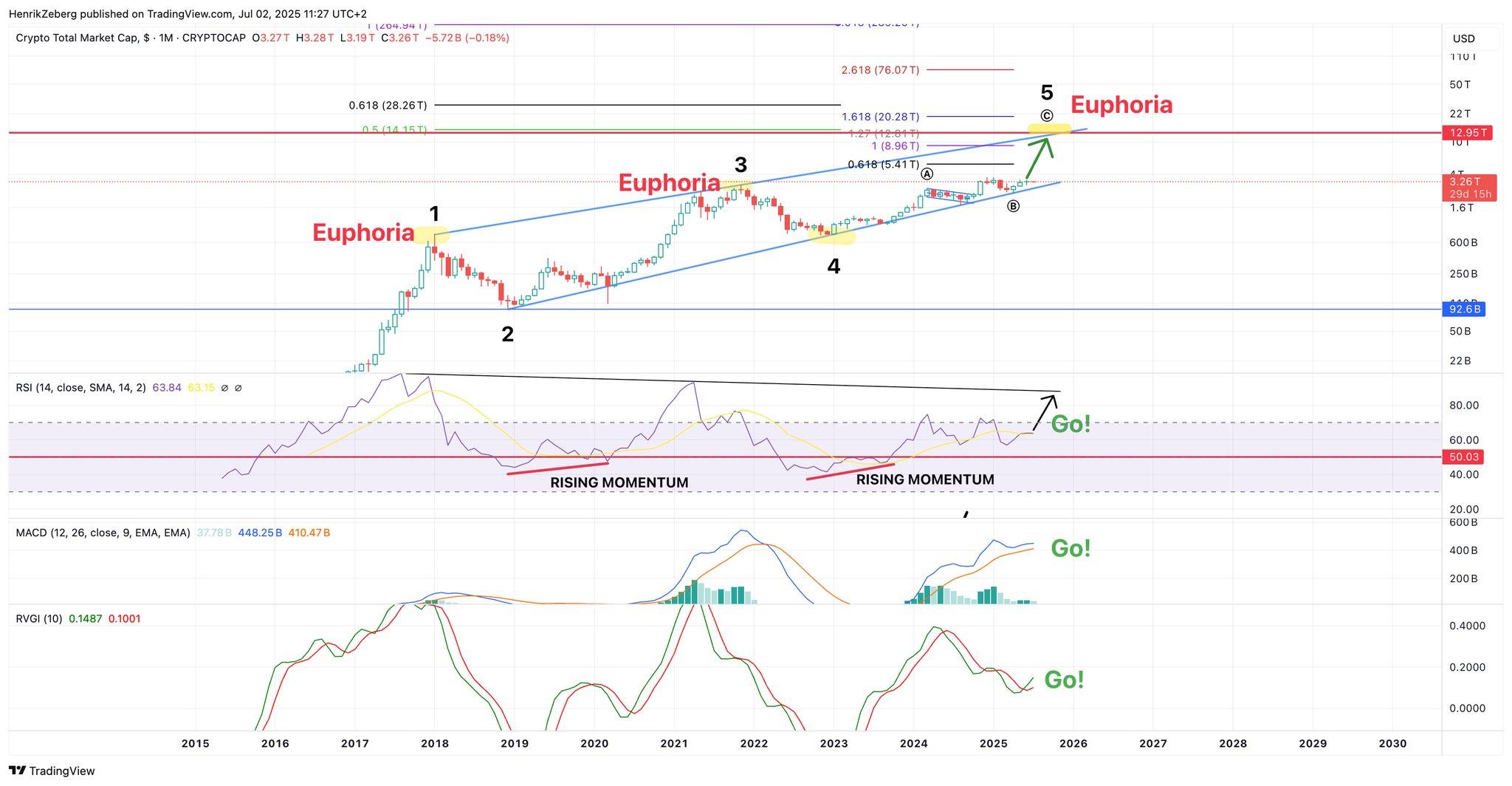 Giá trị vốn hoá của thị trường Bitcoin tiếp tục tăng theo sóng 5