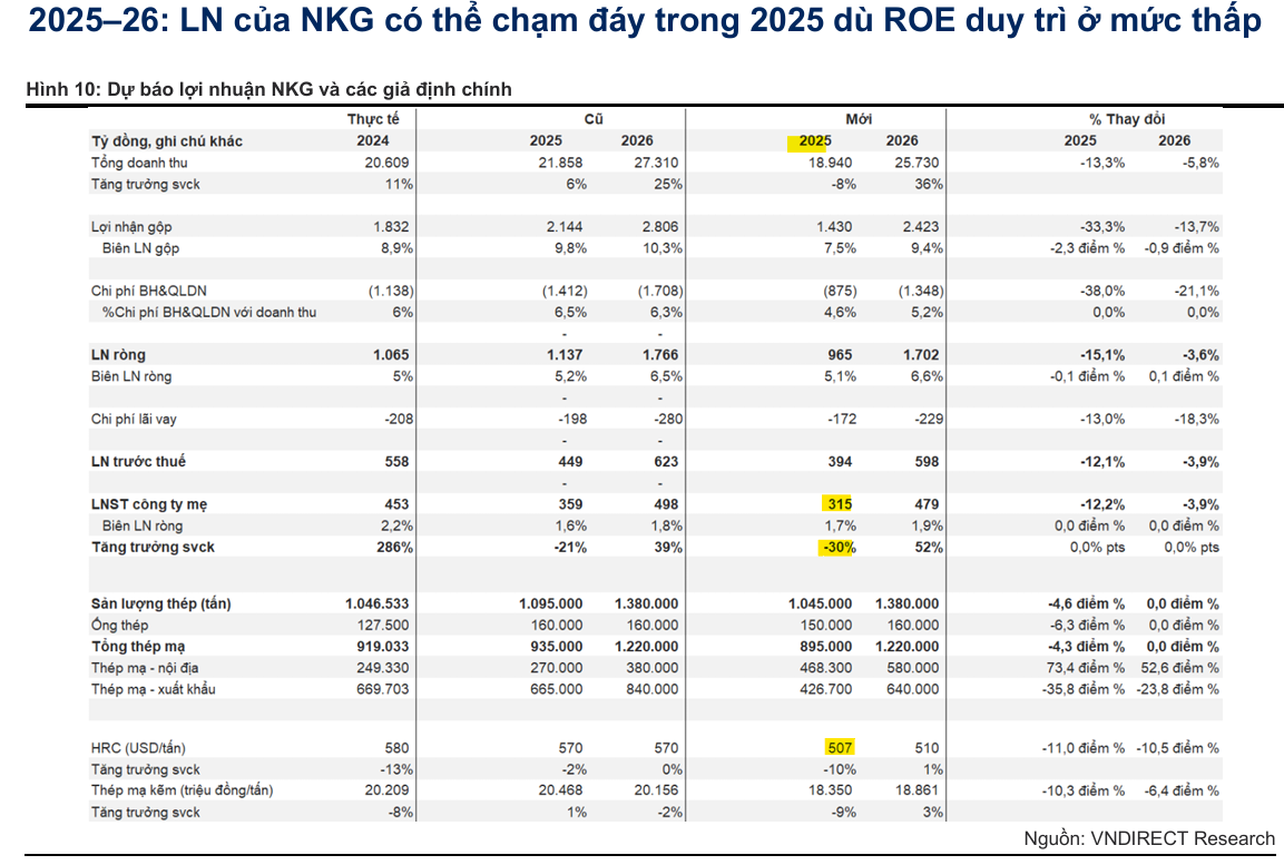 - VNDirect giữ khuyến nghị “Trung lập” với cả HSG và NKG, cho rằng định giá chưa hấp dẫn do ROE thấp và EPS pha loãng.