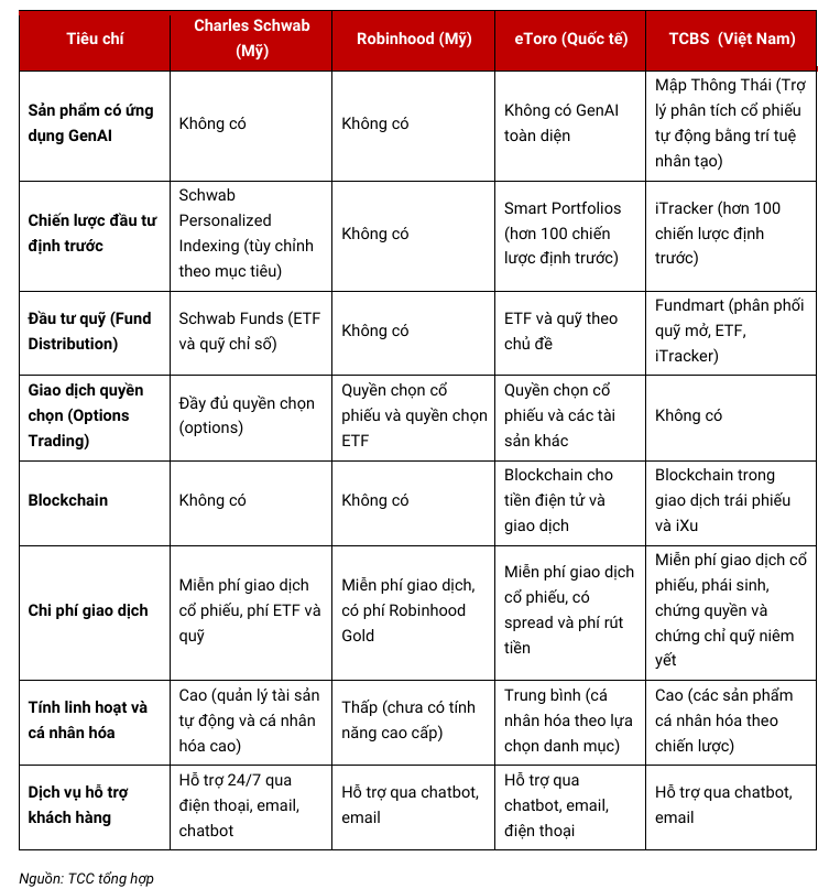 💼 Mô hình WealthTech độc đáo, không phụ thuộc vào môi giới TCBS tiên phong phát triển hệ sinh thái đầu tư số khép kín, không dùng đội ngũ môi giới truyền thống, với nền tảng công nghệ nội bộ mạnh và hậu thuẫn từ Techcombank – giúp tối ưu chi phí và mở rộng quy mô nhanh chóng.