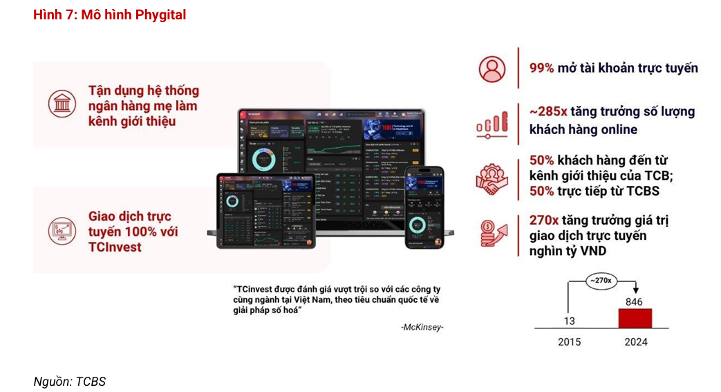 TCBS đã chủ động đón đầu xu hướng này với ba trụ cột chiến lược: sản phẩm đầu tư khác biệt, mô hình phygital (kết hợp online – digital và offline – physical), và nền tảng nhân sự – công nghệ – dữ liệu phát triển nội bộ.